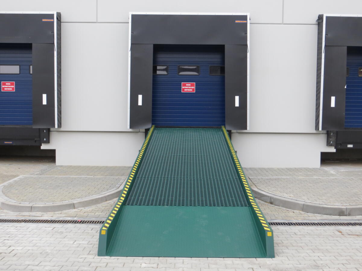 - Bezpośrednie Połączenie: Nasza rampa umożliwia bezpośrednie połączenie placu załadunkowego na poziomie „0” z powierzchnią magazynową. Dzięki temu, wózki widłowe, samochody dostawcze, paleciaki i inne pojazdy mogą swobodnie wjeżdżać do środka magazynu, eliminując potrzebę przenoszenia towarów w trudno dostępnych miejscach.